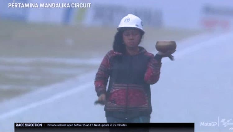 TIMES Surabaya/Raden Rara Isti Wulandari, sang pawang hujan saat Sirkuit Mandalika, Lombok Tengah, NTB, Minggu (20/3/2022) (FOTO: t-2.tstatic.net)