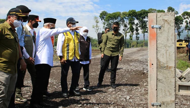 LUMAJANG – Menteri Pekerjaan Umum dan Perumahan Rakyat (Menteri PUPR RI) Basuki Hadimuljono diwakili Sekretaris Jenderal (Sekjen) Kementerian PUPR RI Mohammad Zainal Fatah, pada Jumat (14/1/2021) mendampingi Wakil Presiden (Wapres RI) KH Ma'ruf Amin meninjau lokasi pembangunan Hunian Sementara (Huntara) bagi korban terdampak erupsi Gunung Semeru di Desa Sumbermujur, Kecamatan Candipuro, Kabupaten Lumajang Provinsi Jawa Timur.