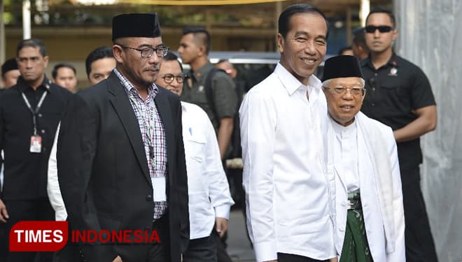 TIMES Surabaya/Presiden terpilih, Jokowi, saat tiba di Gedung KPU RI, Minggu (30/06/2019). (FOTO: Hasbullah/TIMES Indonesia).